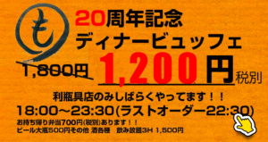 20周年記念 ディナービュッフェ利瓶具店のみしばらくやってます!!