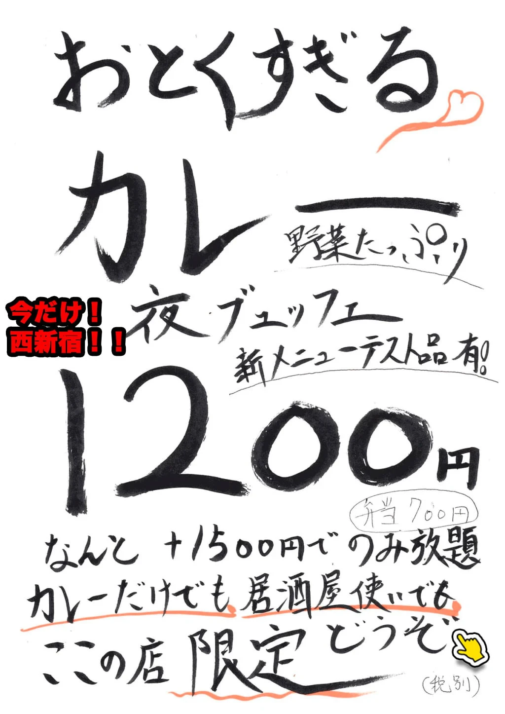 【料金】18:00~23:30(ラストオーダー22:30) 1200円(税別)